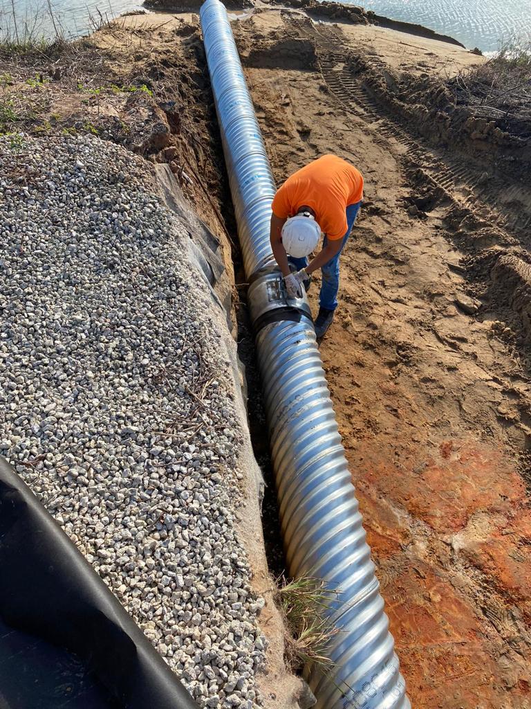 To prepare the land or site, the infrastructure must be created. This involves establishing erosion controls, clearing and grubbing, and grading. The project may also require boring, blasting and pilings, and usually, permanent and sometimes temporary retention and detention ponds.